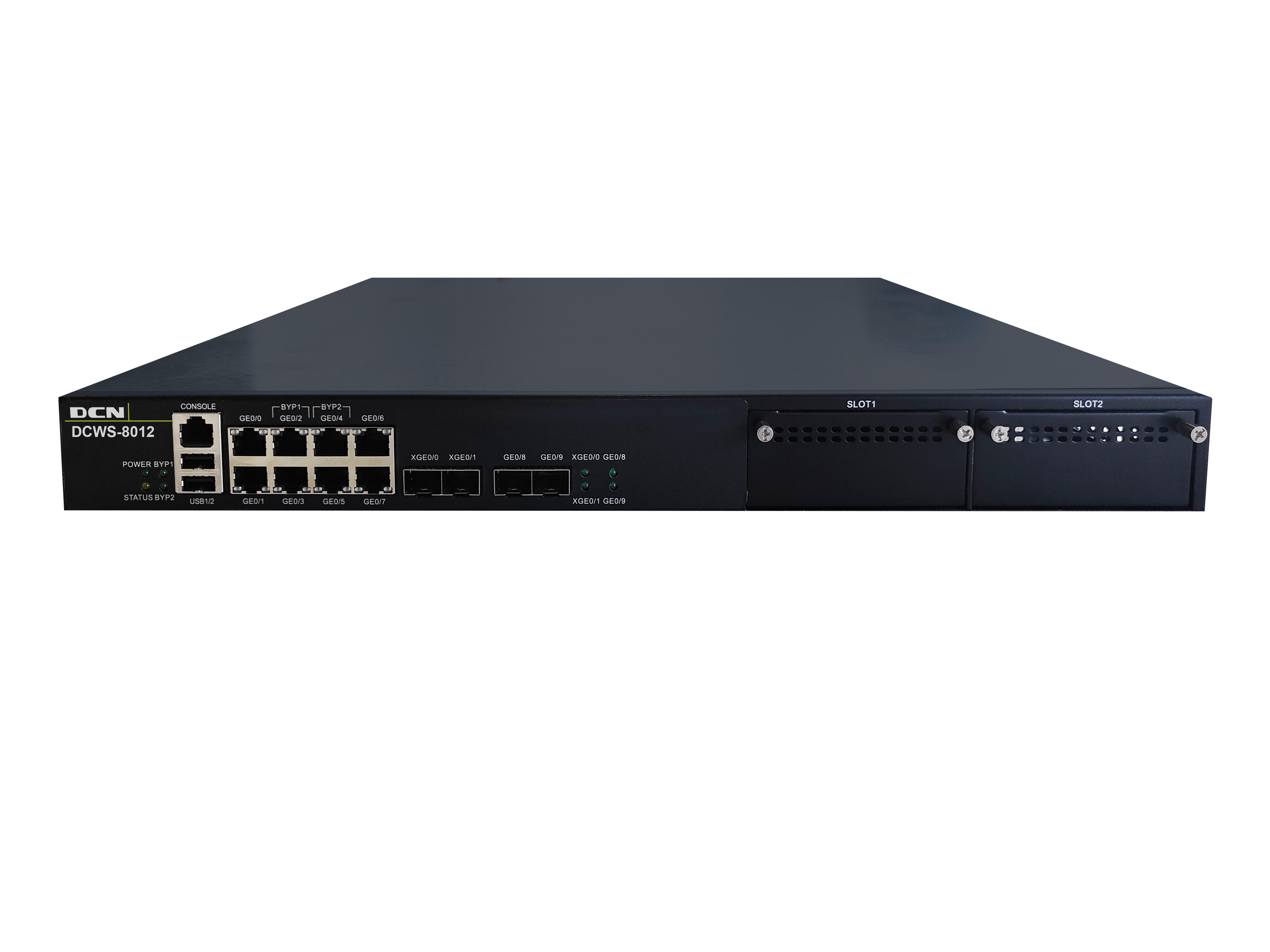 DCWS-8012无线控制器(8个千兆电口+2个千兆光口+2个万兆光口+2个端口扩展插槽),最大可管理2048个AP,默认含96个AP管理许可 |