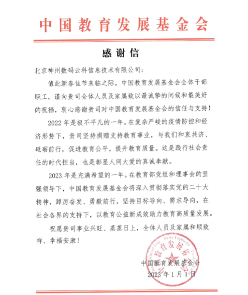 近期,K8凯发一触即发MG冰球突破官网收到中国教育开展基金会的感谢信,以感谢K8凯发一触即发MG冰球突破官网2022年在职业教育领域的贡献和实践,尤其是在全国职业院校大赛(中高职组)中对大赛顺利召开所付出的努力。